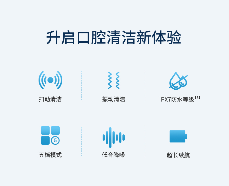 1、声波扫振双效,速效净齿去渍