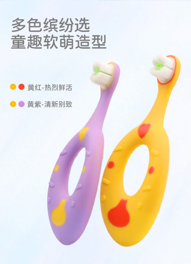 6、童趣配色选择:黄红、黄紫双色可选,造型软萌,适配宝宝审美,提升刷牙兴趣
