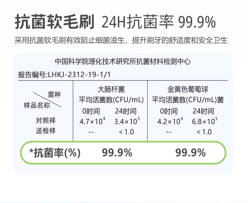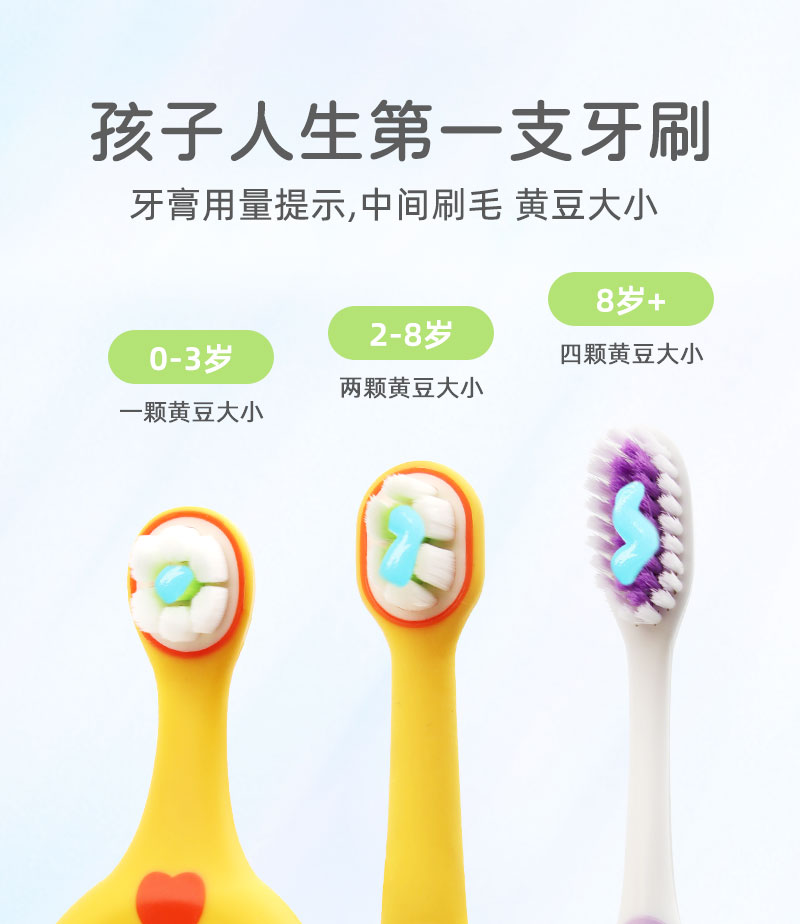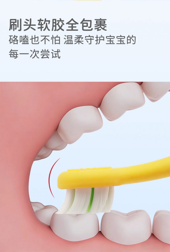 2、护牙软毛:0.12mm尖端软毛,双重组合,清洁同时,减轻对稚嫩牙龈刺激。