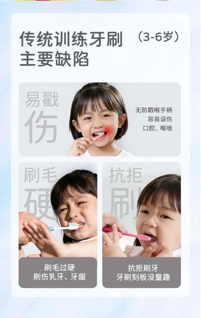 4、童趣助力:多色童趣造型,吸引孩子,助推主动养成刷牙习惯。