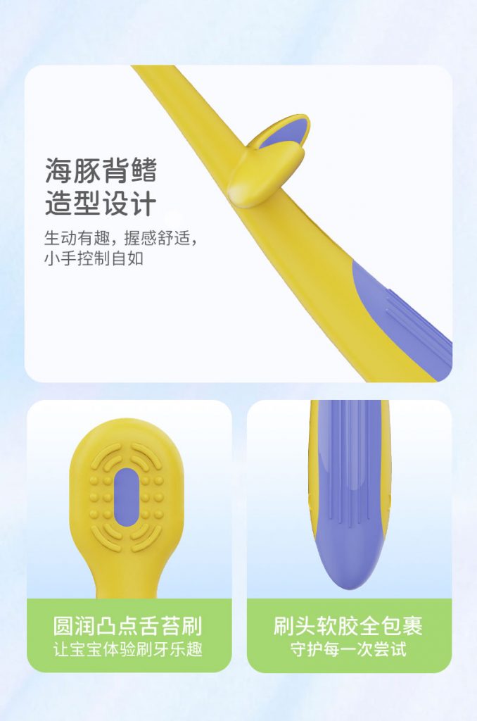 5、细节贴心:可放平设计、凸点舌苔刷、海豚手柄、防滑波纹,兼顾实用与体验。