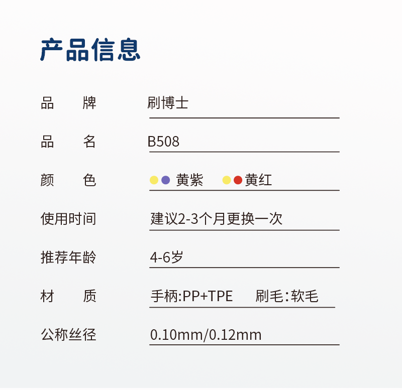 刷博士宝宝牙刷套装,采用0.12mm 柔韧毛 + 0.1mm 超软毛双重软毛,高效清洁同时呵护娇嫩牙龈;软胶全包裹刷头 + 无铜植毛技术,安全耐用防磕碰;萌趣冰淇淋手柄 + 多色可选,助力宝宝养成刷牙好习惯,360° 守护口腔健康。