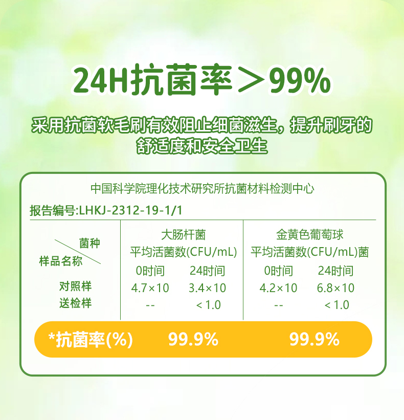 刷毛规格:0.12mm 超纤细柔抗菌软毛,磨圆率符合儿童牙刷安全标准